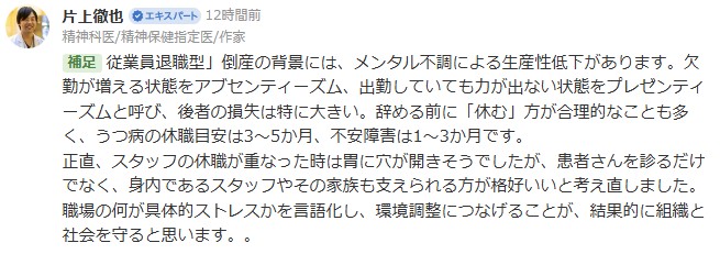 職場の何が具体的ストレスかを言語化し、環境調整につなげることが、結果的に組織と社会を守ると思います。。
