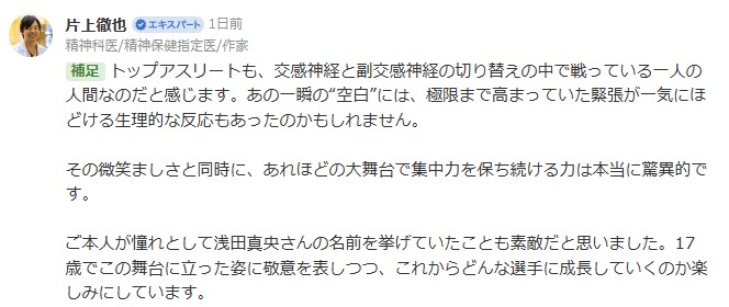 ご本人が憧れとして浅田真央さんの名前を挙げていたことも素敵だと思いました。
