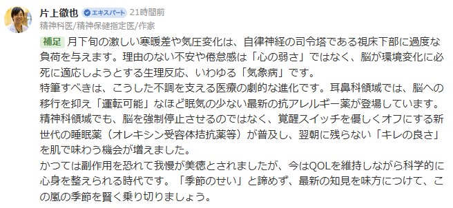 月下旬の激しい寒暖差や気圧変化は、自律神経の司令塔である視床下部に過度な負荷を与えます。